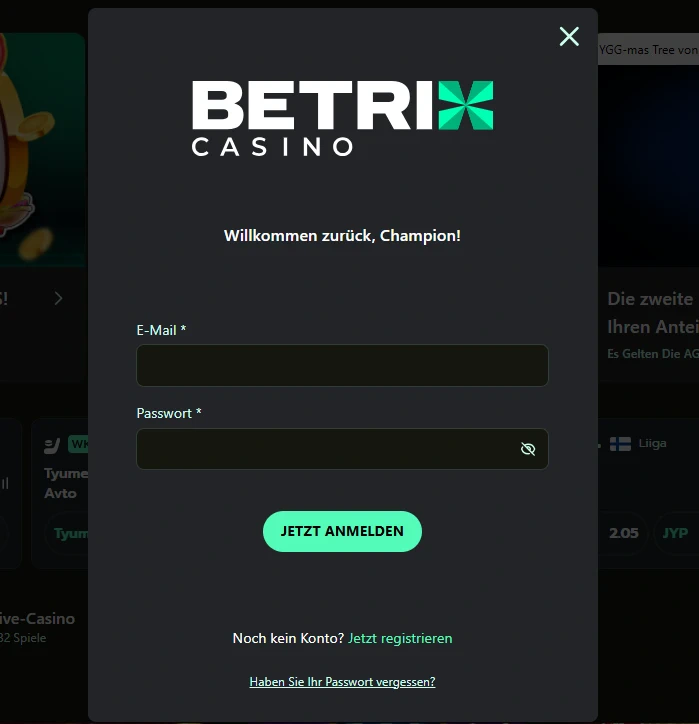Ihre E-Mail + Ihr Passwort werden Ihre offiziellen Betrix Login-Zugangsdaten. Wir empfehlen die Verwendung eines starken Passworts (eine Mischung aus Groß-/Kleinbuchstaben, Zahlen und Symbolen), um Ihr Konto besonders zu schützen—vor allem, wenn Sie häufig spielen oder Zahlungsmethoden für schnellere Einzahlungen speichern möchten.